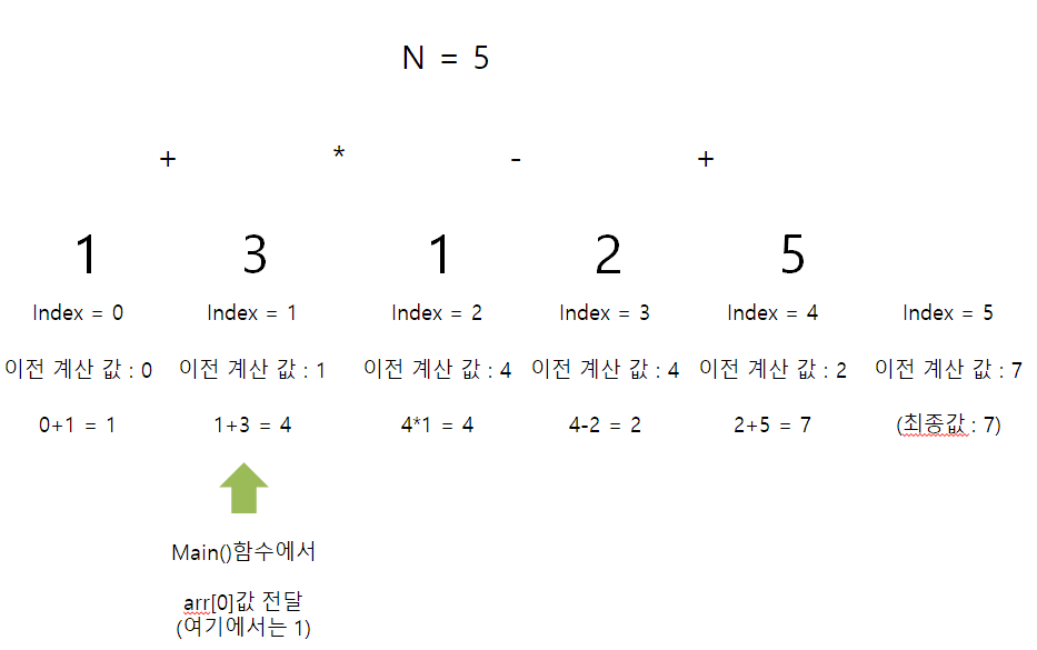 calc(prev_result + arr[index], index + 1, N);