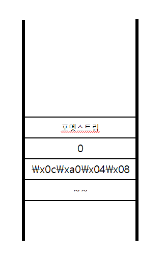 그리고 포맷 스트링을 불러왔을때 스택의 모양을 보면 포멧스트링(사실 정확히는 포맷 스트링의 주소값이다.) 밑에 매개변수 등이 쌓여있고 포멧스트링이 담겨있는 문자열이 한번 더 나온다.